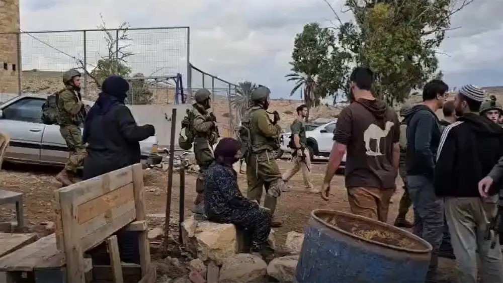 Imagen: Colonos y soldados israelíes ocupan la casa de una familia palestina, en Khirbet al-Malih. Fotografía de los residentes.