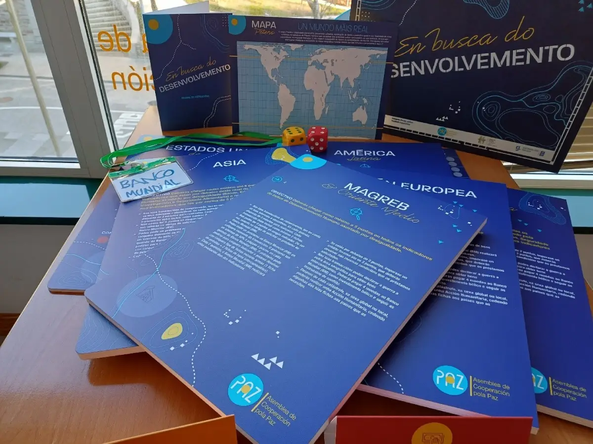 Este juego es un material didáctico ya histórico de ACPP en el que, en junio de 2025, se realizó un proceso de revisión tanto de contenido como de imagen gráfica y visual (tal como ya hemos hecho en la delegación gallega con otros materiales) por considerarlo un recurso muy pertinente que responde a una de las necesidades expresadas por el alumnado de los centros en los que trabajamos, en la sesión de evaluación de las actividades del anterior curso, que manifestaron que querían conocer más sobre el “sistema mundo” y entender mejor las cosas.