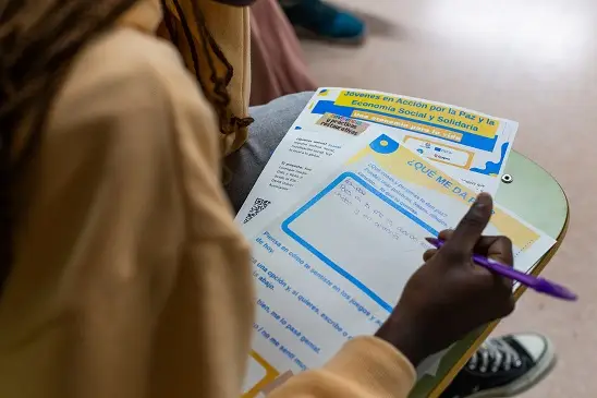 El proyecto también ha abordado la dimensión global de la convivencia. En colaboración con REAS Aragón y el departamento de Economía del centro, se han desarrollado talleres sobre Economía Social y Solidaria y consumo responsable.